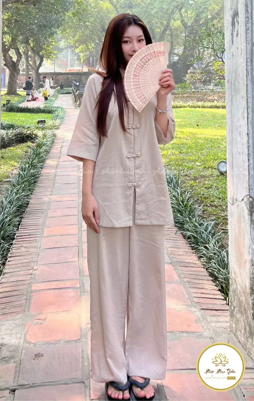 Đồ Lam La Hán Nữ Đài Loan Đũi Vân Mây Màu Kem