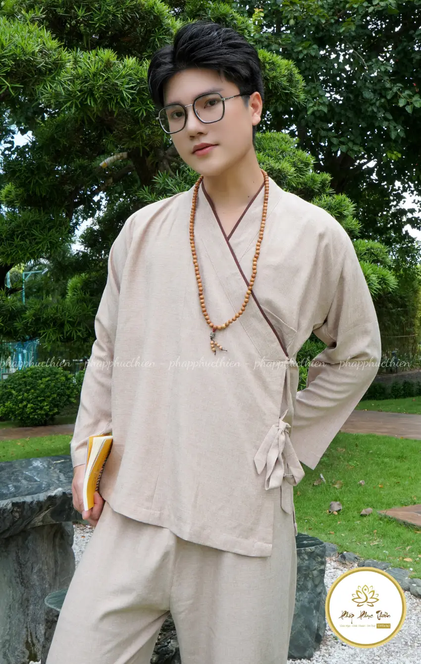 Màu kem mang lại cảm giác ấm áp, an yên và gần gũi. Đây là gam màu dễ mặc, không quá nổi bật, giúp giữ trọn sự khiêm nhường và tinh thần thanh thoát của pháp phục nam.